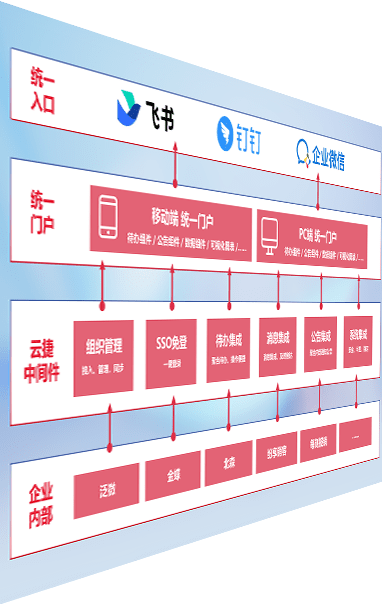 对协作平台提供支持服务,,,支持企业应用与协作平台对接,,,,包含组织同步、、、消息集成、、、、待办集成等。。支持目前主流的协作平台:钉钉、、、企微和飞书。。。。